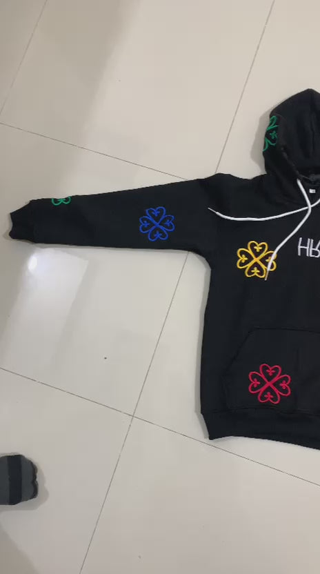 Black or white multicolored embroidered tree of god hoodie with a satin hoodie lining